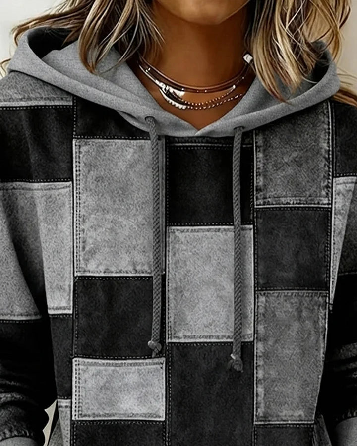 Glamora - Elegante Felpa con Cappuccio a Maniche Lunghe a Quadri